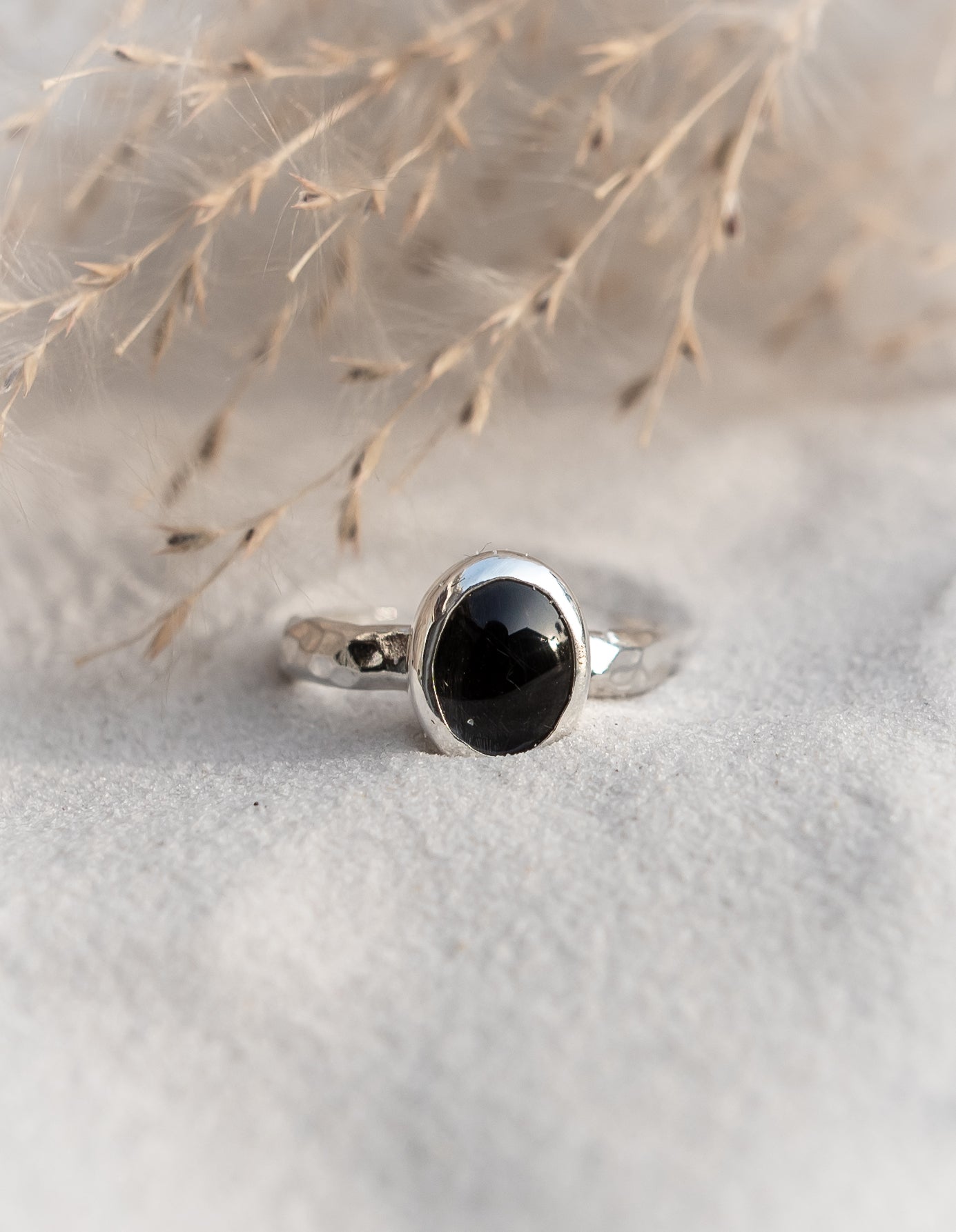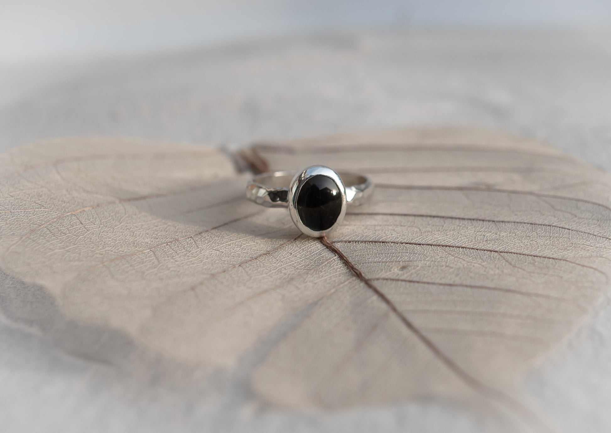 „Der Ring ‚Oval‘ vereint schlichte Eleganz mit einer persönlichen Erinnerung. Die ovale Fassung hält das Fell deines Haustiers sicher bewahrt, eingefasst in hochwertigem Silber mit Hammerschlag Muster auf dem Ringband. Auf Wunsch stempel ich den Namen deines Tieres auf die Innenseite des Rings"